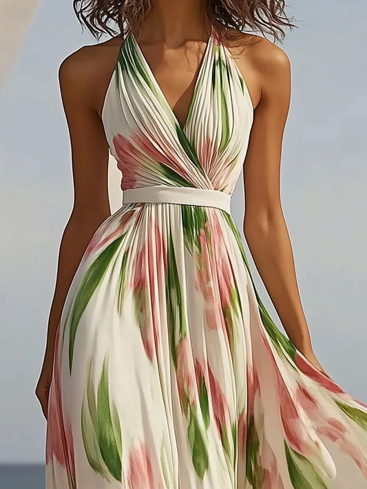 Celebrity Style Senior Vintage Halter Temperament Bustier Maxi Dress