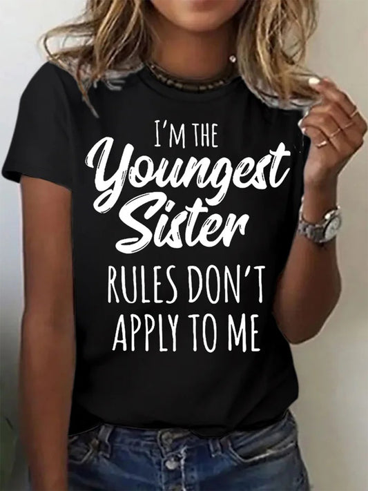 Youngest Sister Funny Letters Crew Neck T-shirt