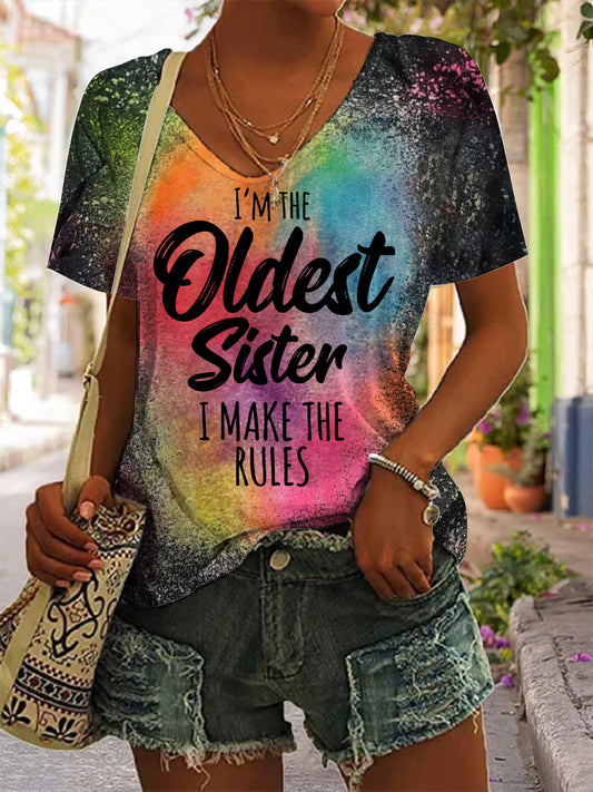 I'M THE OLDEST SISTER I MAKE THE RULES V Neck Short Sleeve T-Shirt