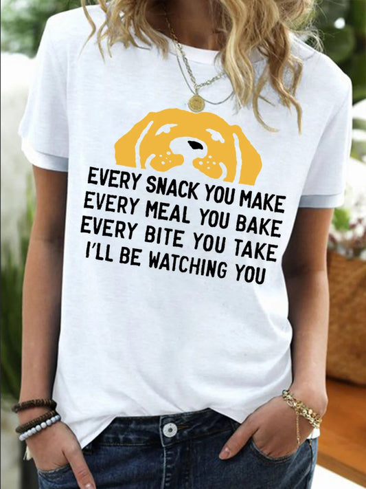 Every Snack You Make I Will Be Watching You Funny Dog Graphic Crew Neck T-shirt