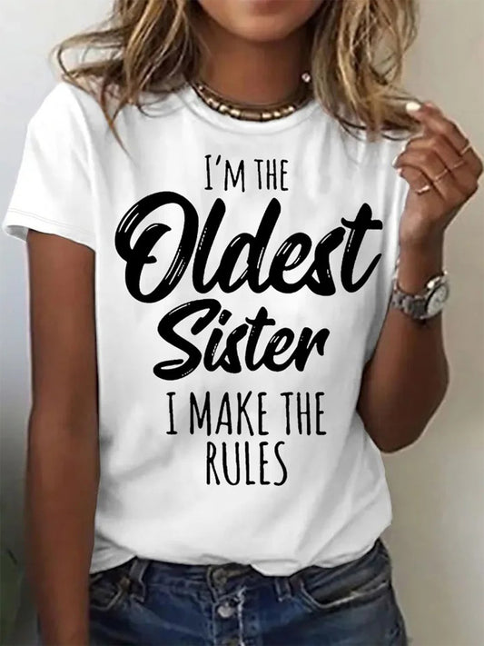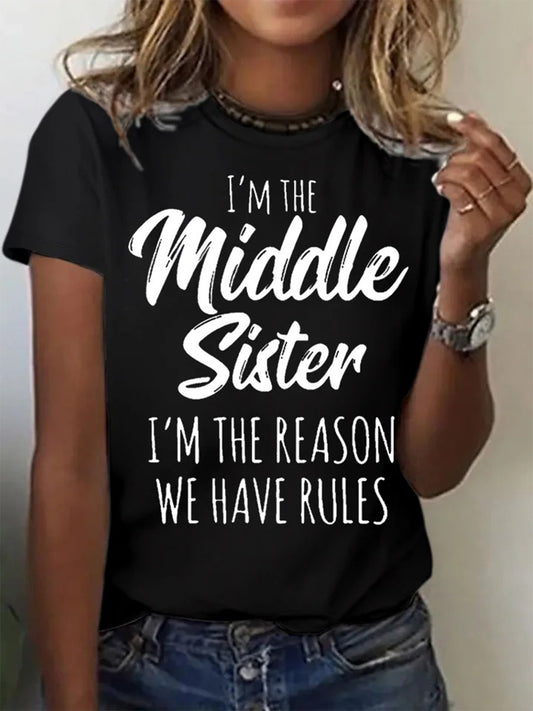 Funny Middle Sister Casual Letters Crew Neck T-shirt