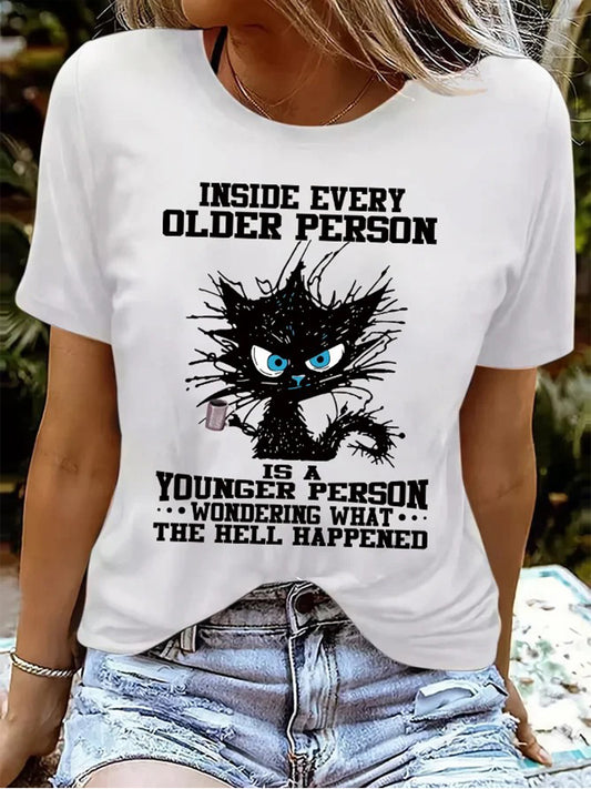 Funny Grumpy Cat Inside Every Older Person Is A Younger Person Crew Neck T-shirt