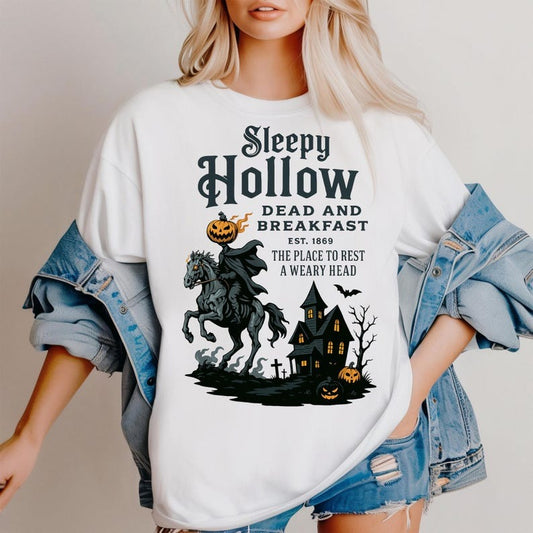 Vintage Halloween Sleepy Hollow Art Print Crew Neck T-shirt