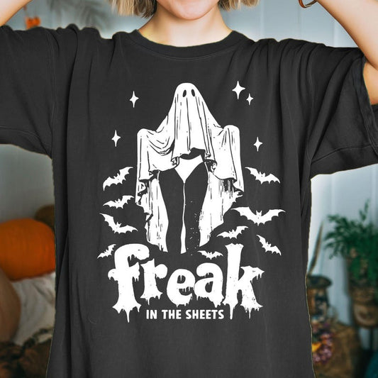 Funny Halloween Sheet Ghost Print Crew Neck T-shirt