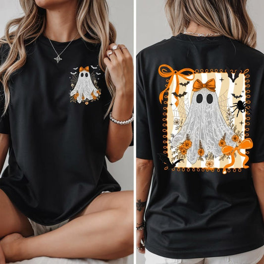 Preppy Floral Ghost Fall Crew Neck T-shirt