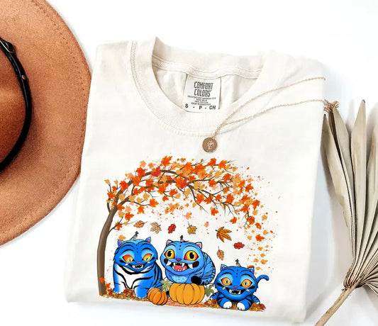 Fall Highland Cow Halloween Printed Crew Neck T-shirt