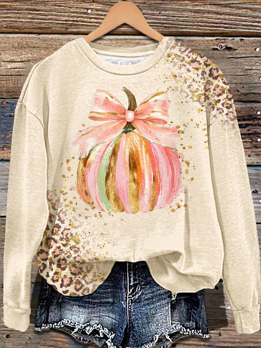 Halloween Leopard Print Halloween Pumpkin Long Sleeve Casual Top