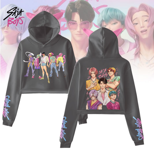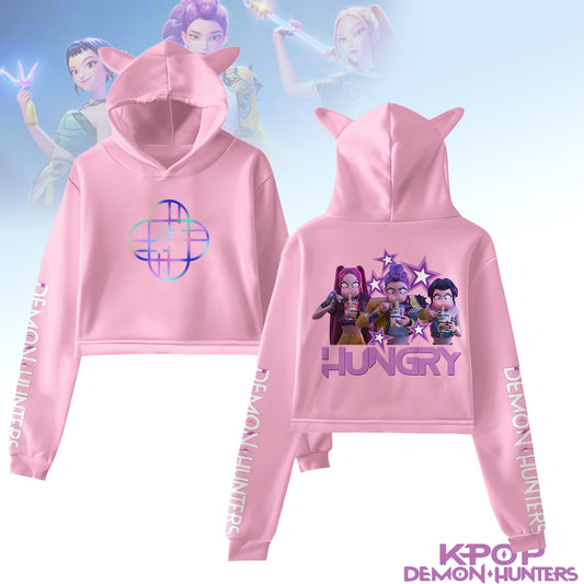 Kpop Demon Hunters Crop Tops Cat Ears Long Sleeve Hoodie