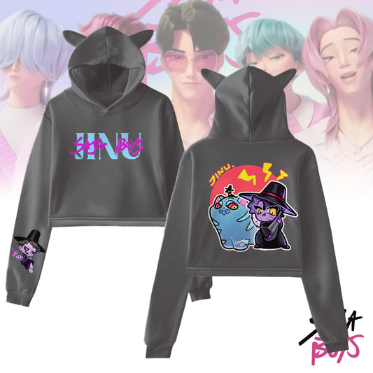 Kpop Demon Hunters Crop Tops Cat Ears Long Sleeve Hoodie