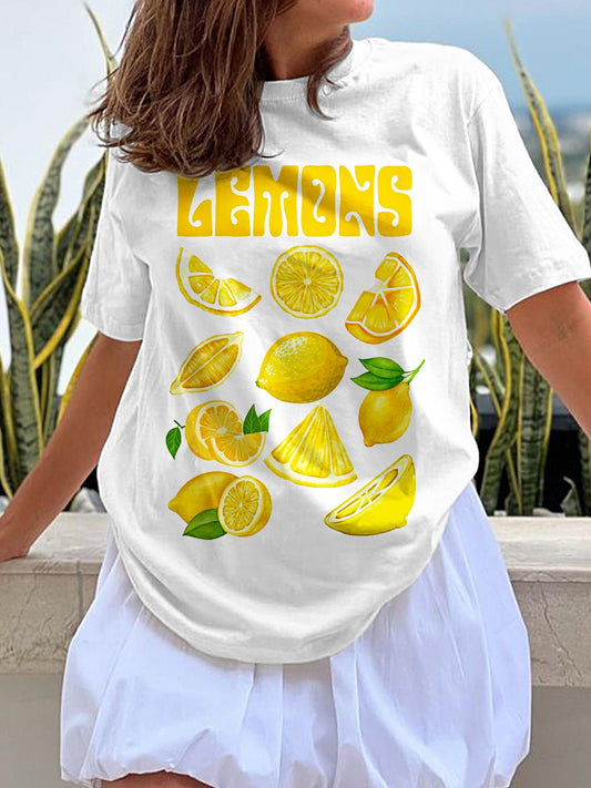 Refreshing Summer Lemon Print Crew Neck T-shirt