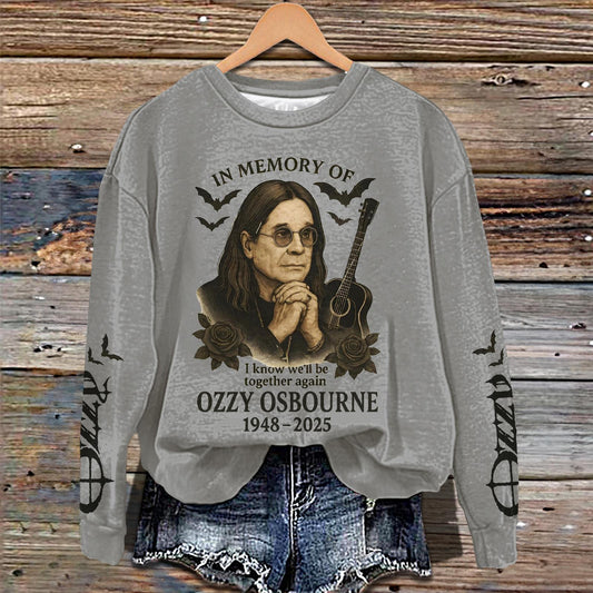 In Memory of Ozzy Osbourne Printed Long Sleeve Casual Top