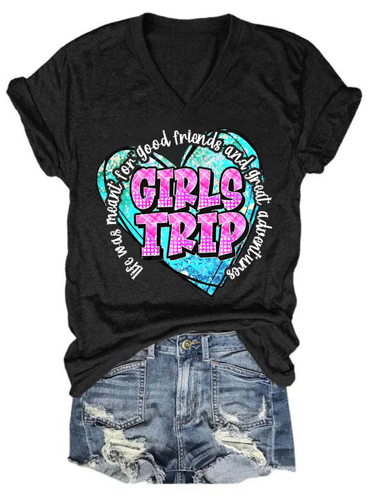 Cute Cat Contrasting Colors V-Neck Short Sleeve T-Shirt