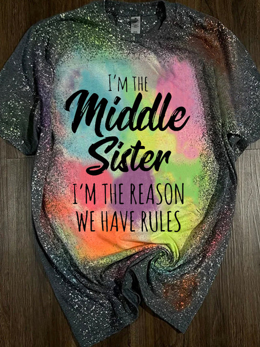 I'm The Middle Sister I'm The Reason We Have Rules Tie Dye Print T-Shirt