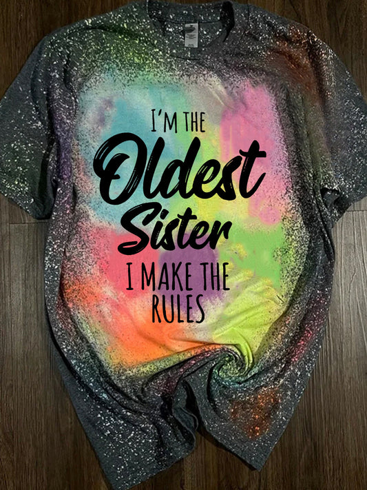 I'm The Oldest SIster i Make The Rules Tie Dye Print T-Shirt