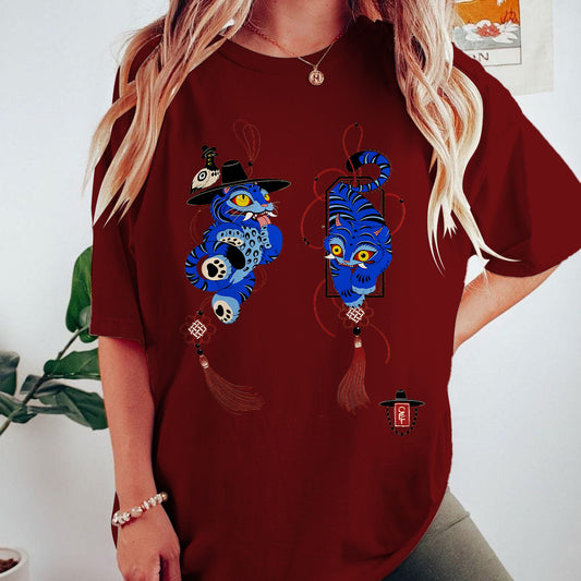 ヒッピーサイケデリックキャットクルーネックTシャツ