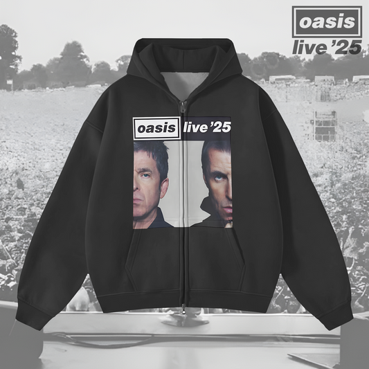 Oasis Live '25 ツアー プリント ジッパー付きスウェットシャツ ジャケット