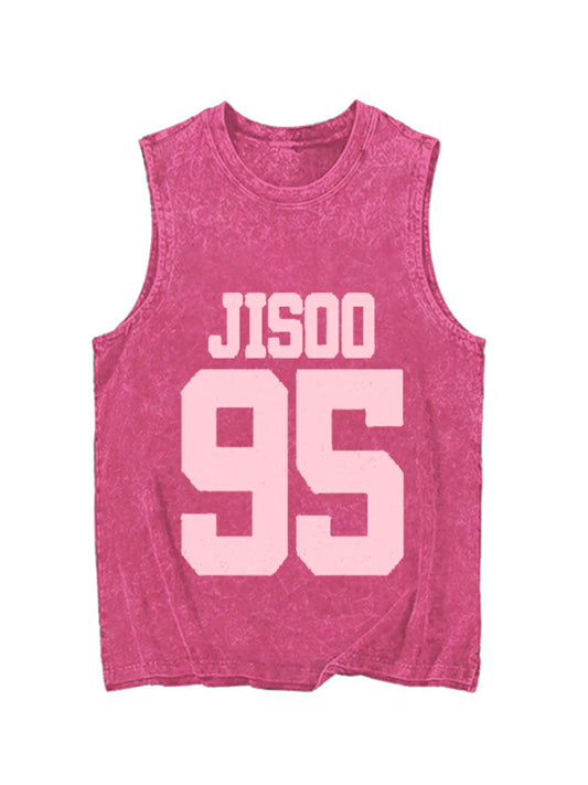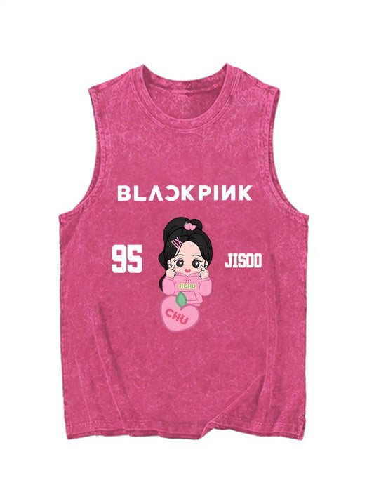 ブラックピンクのメンバープリントヴィンテージタンクトップ