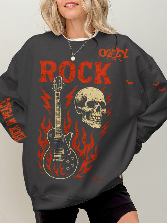 Ozzy Osbourne Retro Printed Long Sleeve Casual Top