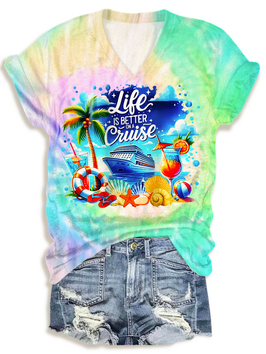 크루즈 라이프 이즈 베터 타이다이 아트 V넥 티셔츠