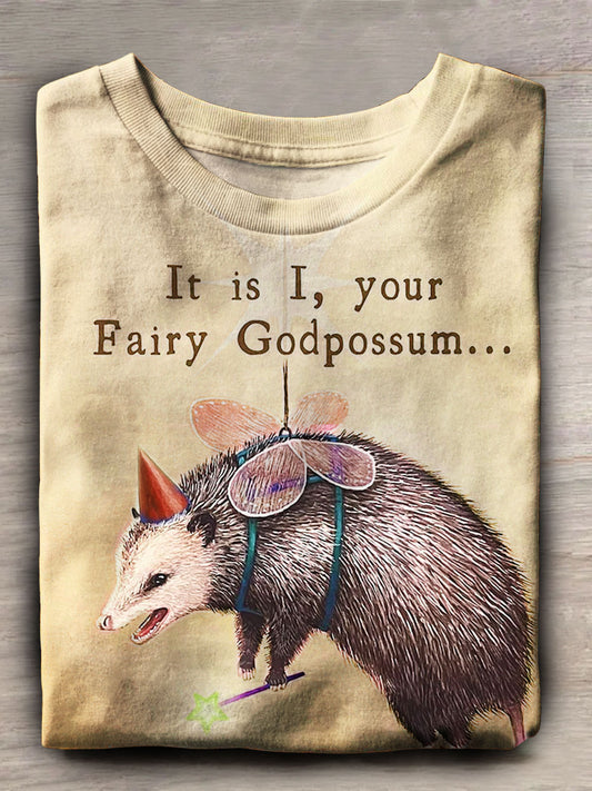 재밌는 주머니쥐 프린트 캐주얼 반팔 티셔츠