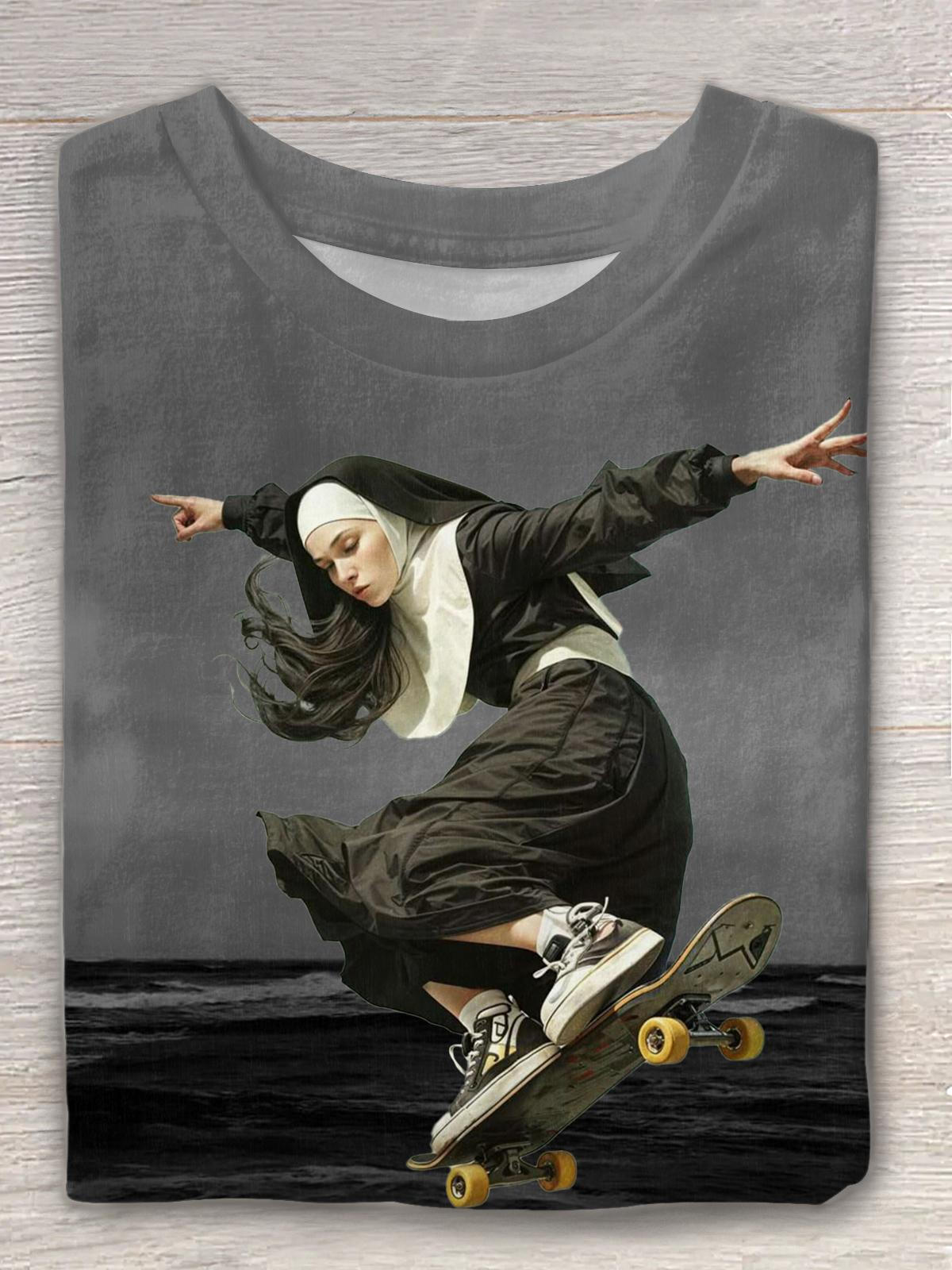 Mischievous Female Print Crew Neck T-shirt